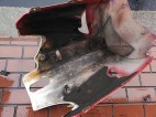 左写真: 汚れが溜まるアンダーカウル内側。