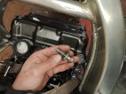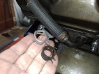 左写真: オイルリターンチューブのクランプを交換。