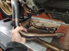 左写真: エキパイも綺麗に磨いて装着。