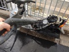 分解前に高圧洗浄。水飛沫で元旦からビチョ濡れ。寒っ!