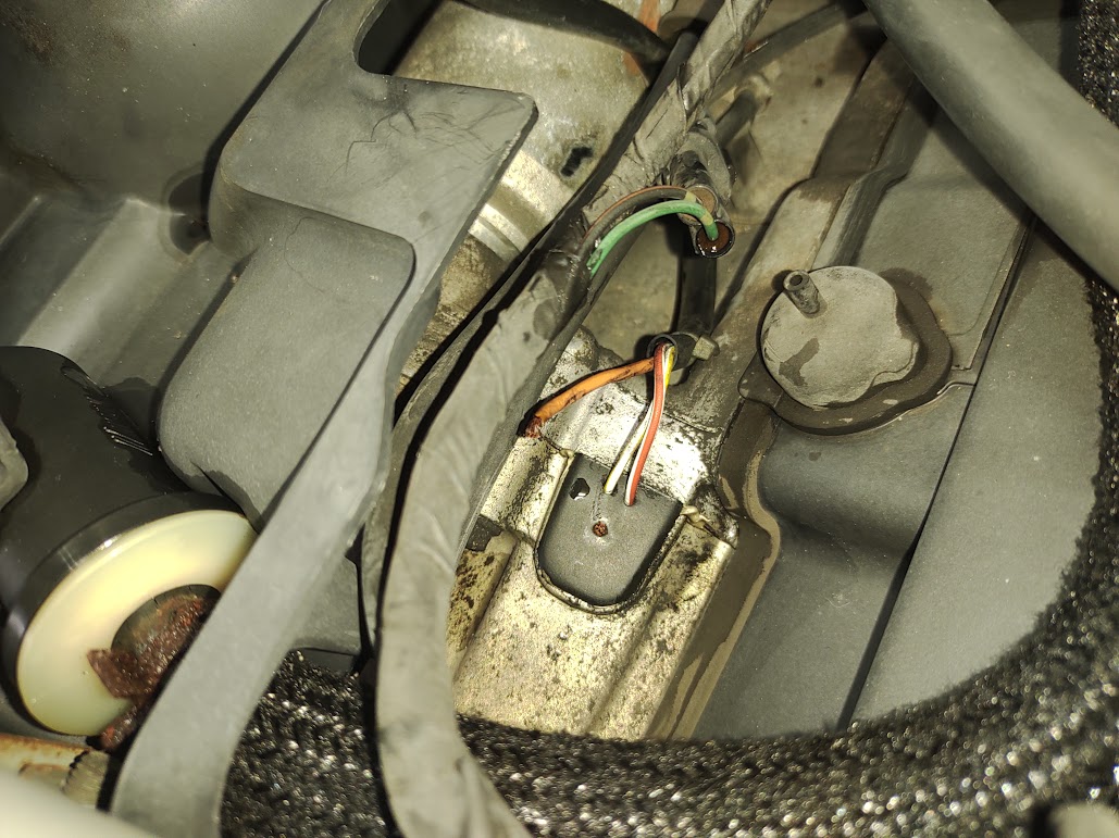 写真: パルサー線が被覆内断線。しかもグロメット内。
