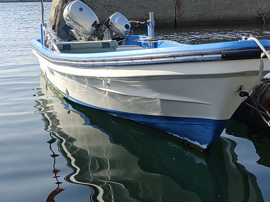 そしてMy釣船。最近は釣り行けず、港に放置状態。