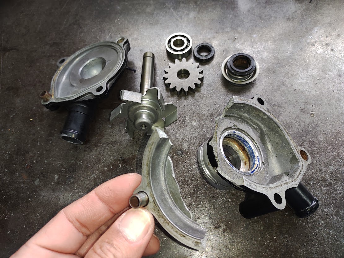 俺のバイクじゃないけど、水ポンプ1個で廃車もなぁ?