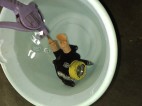 右写真: 水バケツで圧検。当然、漏れナシでOK.。